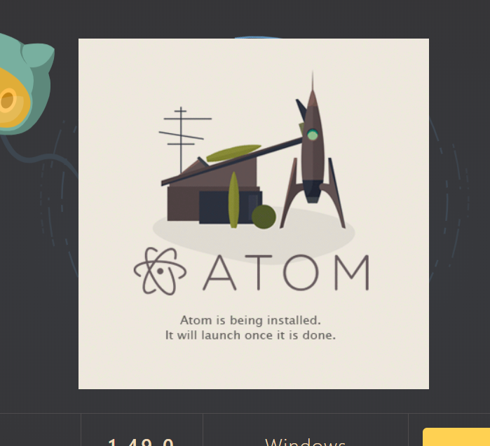 5. install 버튼을 누르면 atom이 켜지고 atom에서 다시 Install 버튼을 눌러줍니다. 참 쉽죠?