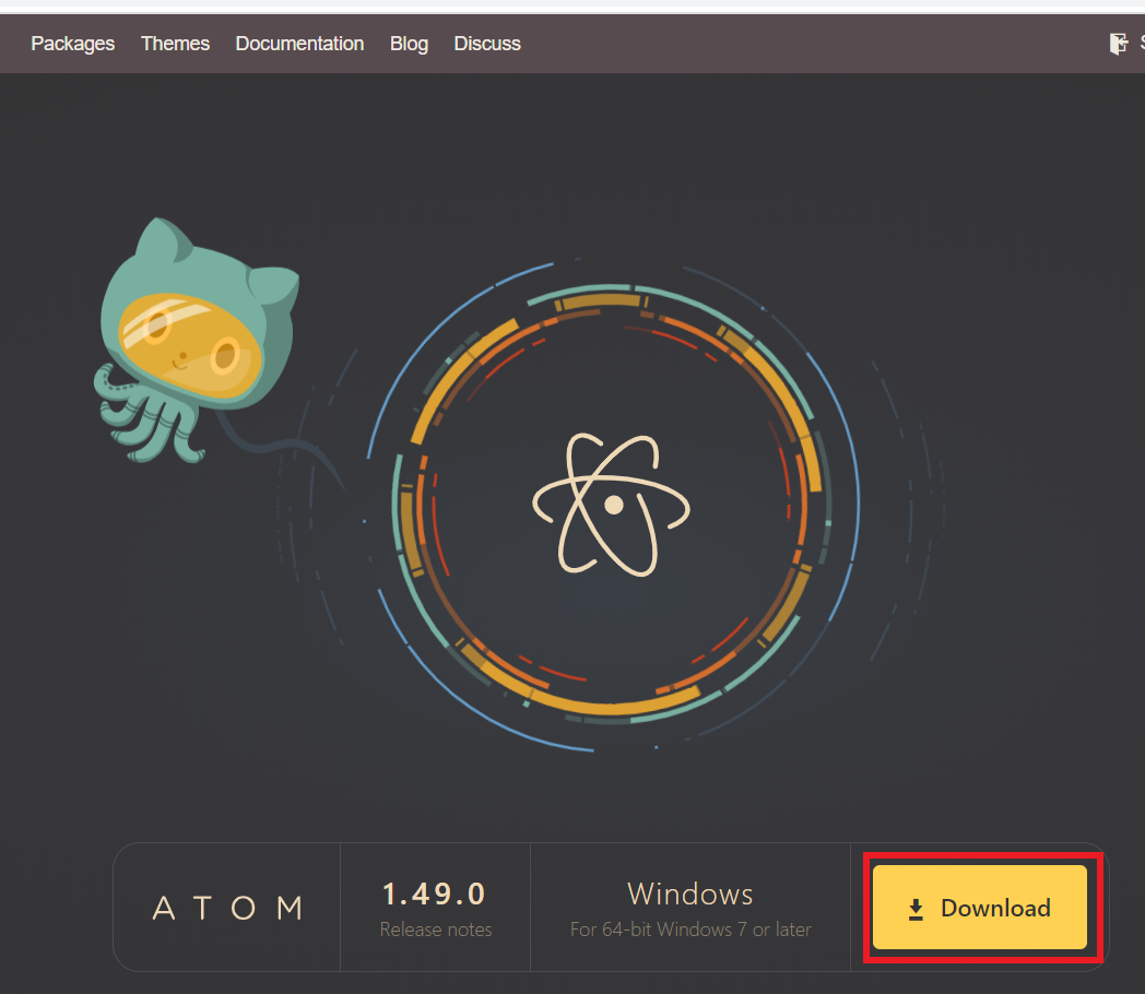1. 우선 Atom 공식 홈페이지에서 다운로드 버튼을 누릅니다.