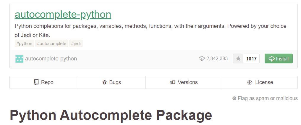 - autocomplete-python : 파이썬 코드 작성 중 자동완성 기능 제공\